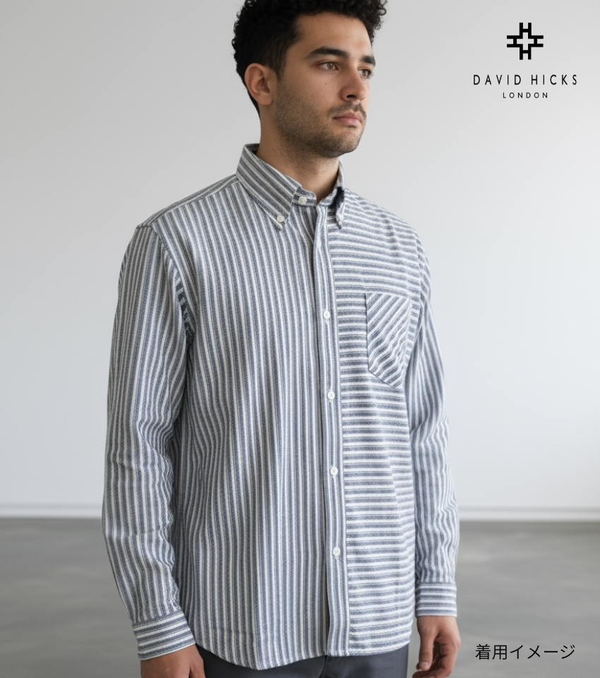 デービッドヒックス DAVID HICKS クールビズ COOLBIZ タウンユース 長袖ワイシャツ 秋冬 ワンポイント 大人カジュアル 父の日 お祝い 誕生日 ストライプ プレゼント オフィス アシメ アメシントリー シャツ
