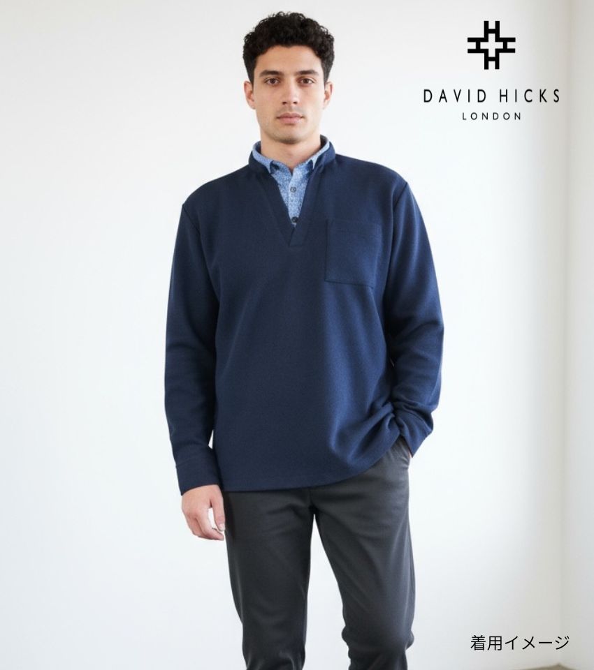 【デービッドヒックス】布帛衿 カノコレイヤードポロシャツ ネイビー